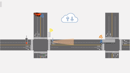 在安全方面,我们也做了很多探索,以一个避让小场景为例,我们做了一个路口主动安全预警,即通过对路口运行车辆的速度、位置精准检测,识别大货车闯红灯行为,通过车载设备、路测设备向交叉方向机动车定向发布预警,及时采取预防措施,在道路照明不理想的偏远路口和时距不佳的非信号控制路口,可大大降低事故发生概率。